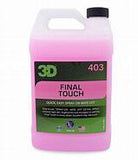 Final Touch is a last touch waterless car wash that will leave some wax protection. After detailing, what you have left are some smudges. On your final delivery for your customer we have some of these smudges instead of pulling out waxes and degreasers and all sorts of cleaners we have a very mild wax and cleaner in FINAL TOUCH.
