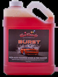 BURST is a ready to use, non-acid foaming wheel and tire cleaner that is safe on all factory, clear-coated, painted and chrome wheels. It is formulated to cling to vertical surfaces to make
